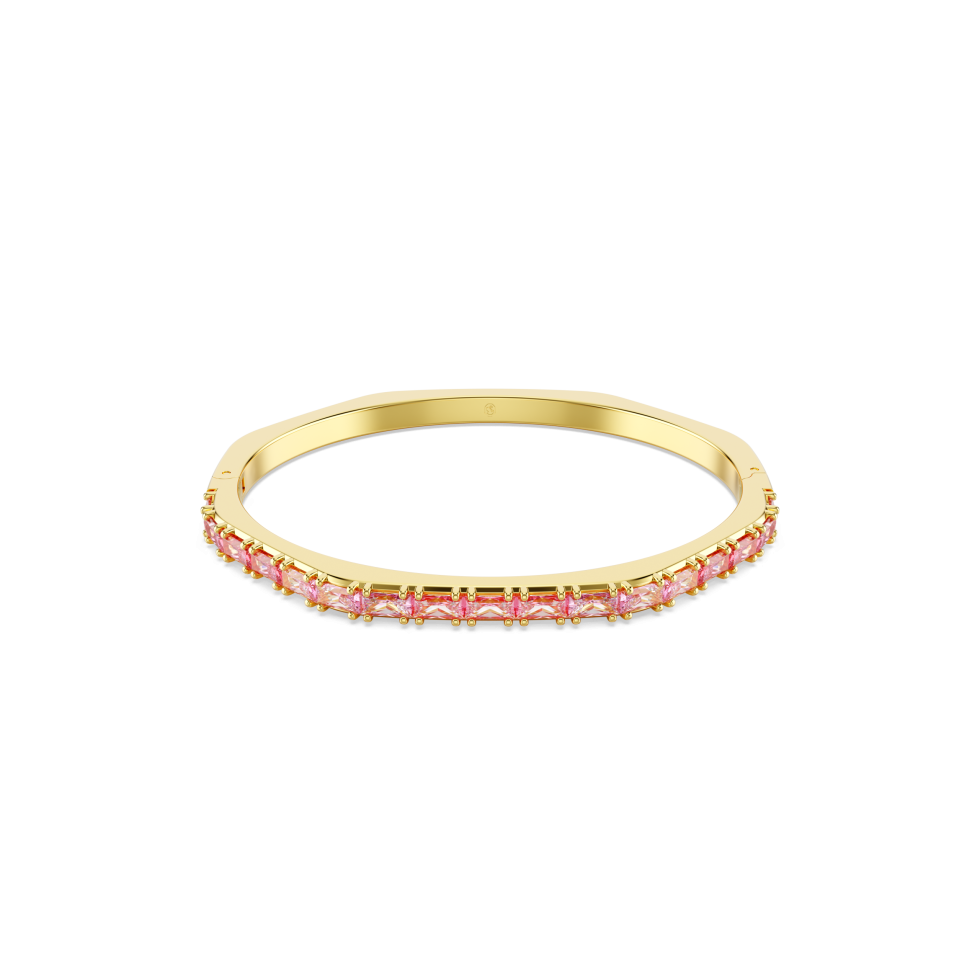 Ignite your everyday look with this hinged Matrix bangle. The gold-tone plated design is crafted in Swarovski’s emblematic octagon shape and is playfully adorned with a gradient of pink baguette-cut Swarovski Zirconia in a horizontal setting. Perfect for stacking alongside matching Matrix bangles, it’s a full surround of signature Swarovski color to express your most vibrant self.