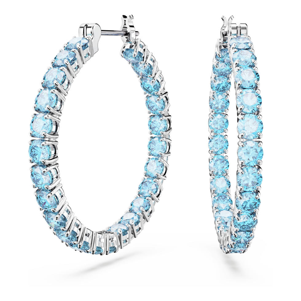 Matrix hoop earrings, Round cut, Blue, Rhodium plated