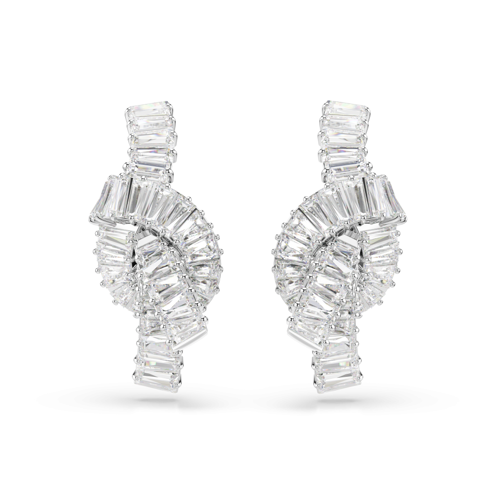 Signifying an unbreakable bond, these Matrix earrings are designed with a unique woven style. Taking the form of a ribbon, each twisted motif is rhodium plated and features a sophisticated adornment of baguette-cut Swarovski Zirconia in prong settings. Reach for these earrings when sophistication is called for – and pair them with the matching Matrix jewelry pieces for a coordinated look.