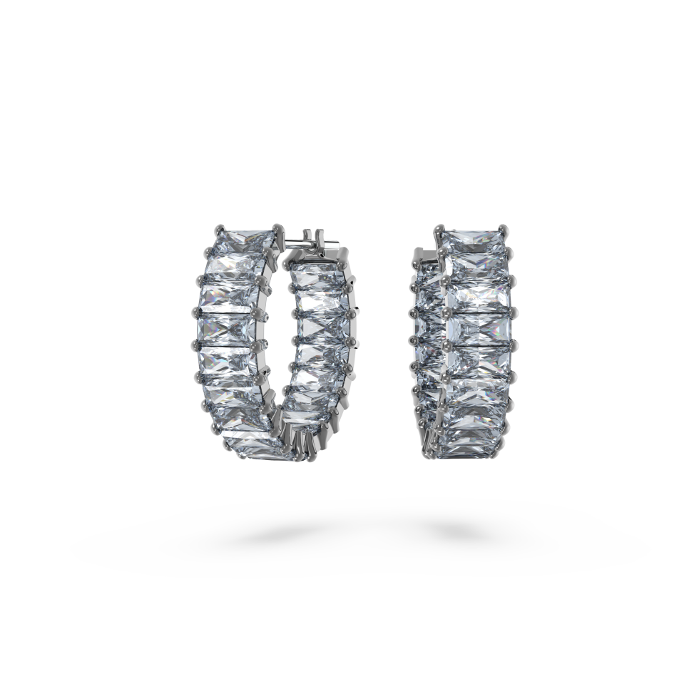 Matrix hoop earrings, Baguette cut, Gray, Ruthenium plated