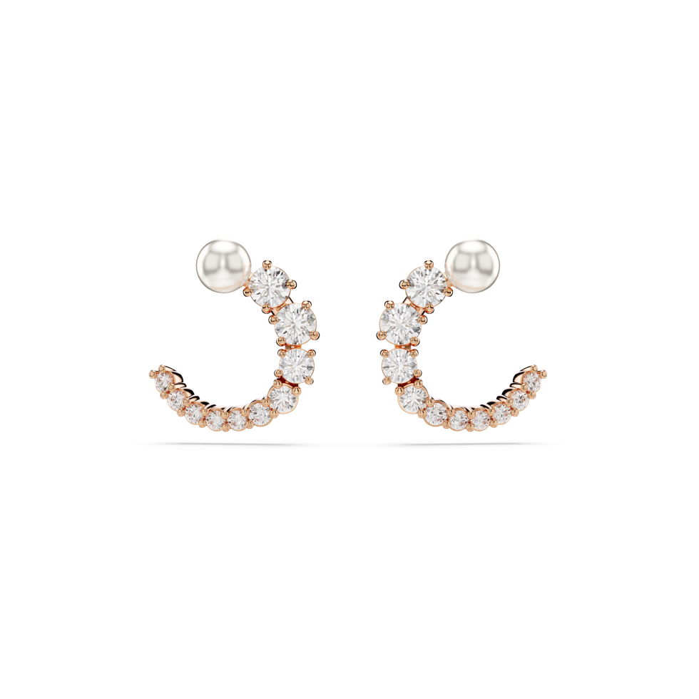 Matrix hoop earrings, Crystal pearl, Round cut, White, Rose gold-tone plated
