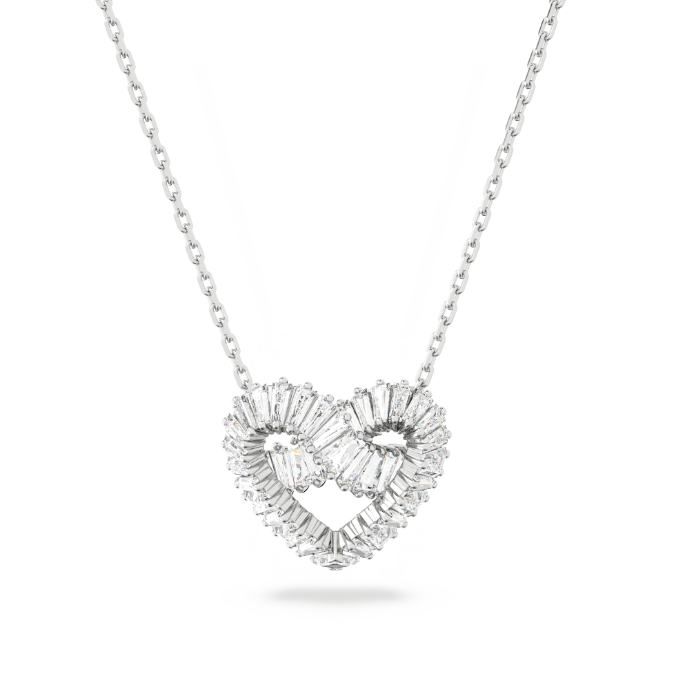 Matrix pendant, Mixed cuts, Heart, White, Rhodium plated