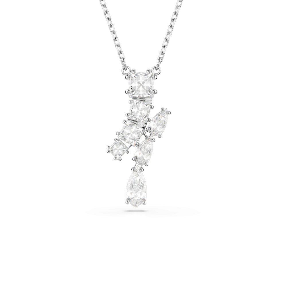 This exquisite Matrix pendant is a stunning example of Swarovski’s mastery of cut. Suspended from an elegant chain with a lobster closure, the rhodium plated jewelry is precisely arranged with an array of prong-set Swarovski Zirconia in different shapes. Pair with a set of matching earrings to create a light-filled look.