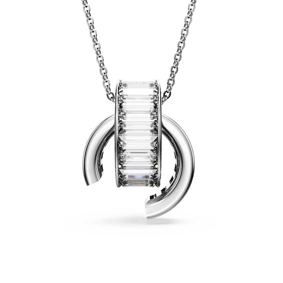 Matrix pendant, Baguette cut, White, Rhodium plated