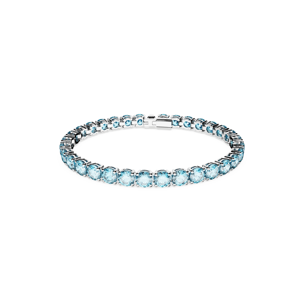 Surround your wrist in vibrant jewels with this glittering bracelet from the Matrix Tennis family. In perfectly formed fluidity, the design features a row of round stones in light aquamarine on a rhodium plated setting for a cool combination. Wear it alone, or pair it with other pieces from the Matrix Tennis family.