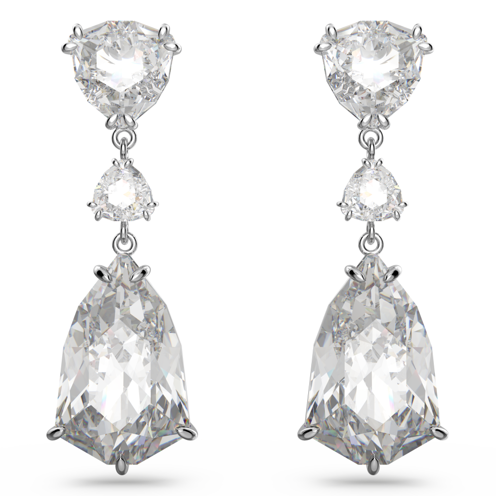 Mesmera drop earrings, Mixed cuts, White, Rhodium plated