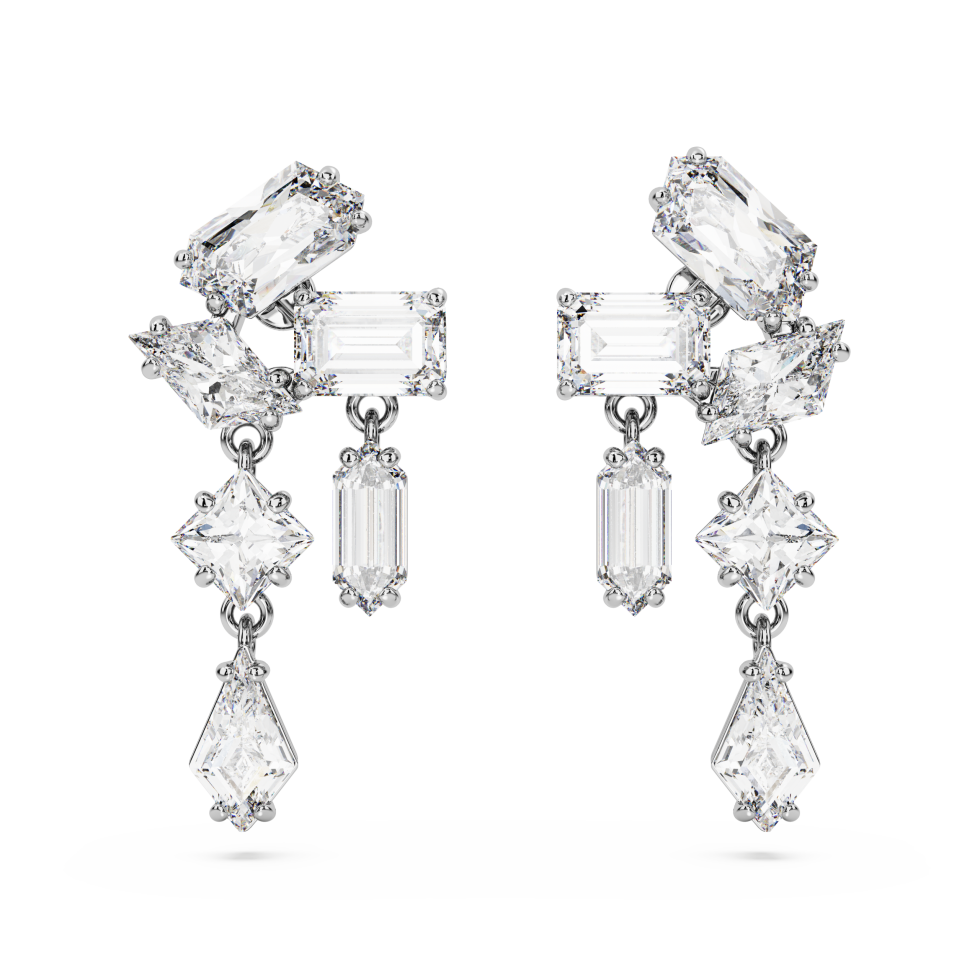 Mesmera drop earrings, Mixed cuts, White, Rhodium plated
