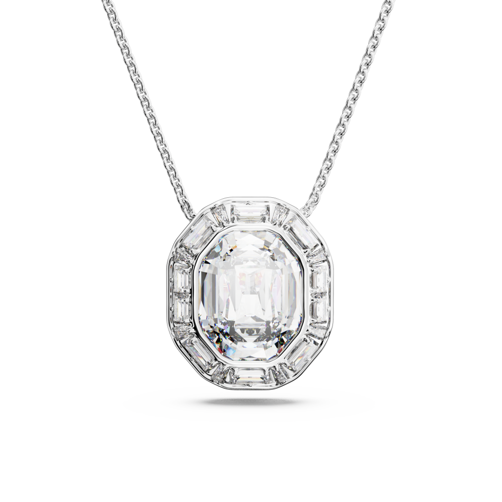 Mesmera pendant, Octagon cut, Large, White, Rhodium plated