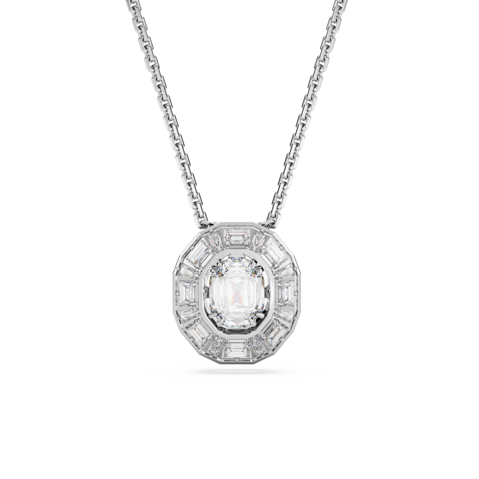 Mesmera pendant, Octagon cut, Small, White, Rhodium plated