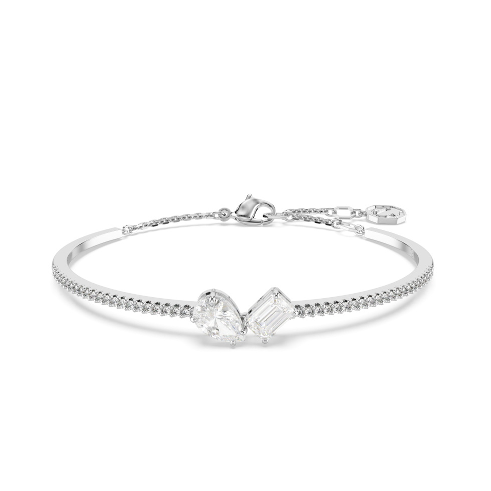 Mesmera bangle, Mixed cuts, White, Rhodium plated