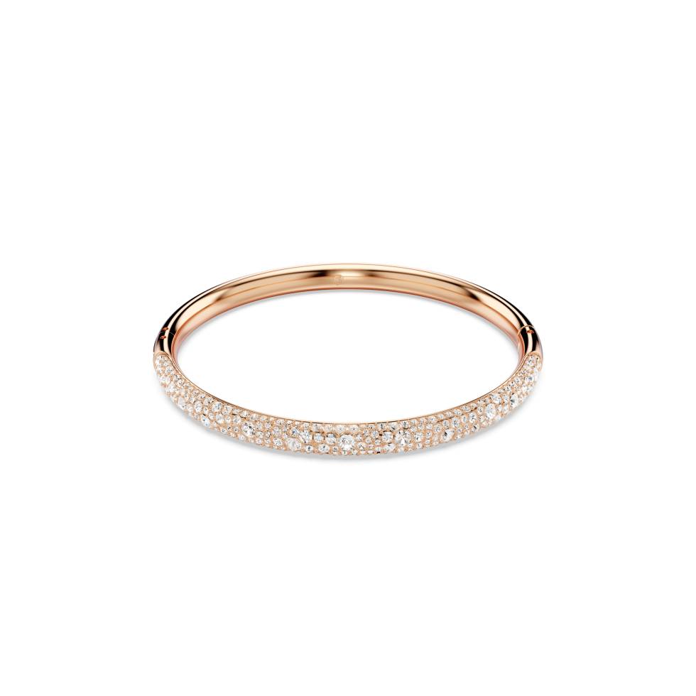 This dazzling Sublima bangle will infuse your style with stardust. The rose gold-tone plated band wraps gracefully around the wrist and features a snow pavé of clear round crystals in different sizes across the top section. A wondrous touch of refinement for your everyday looks.