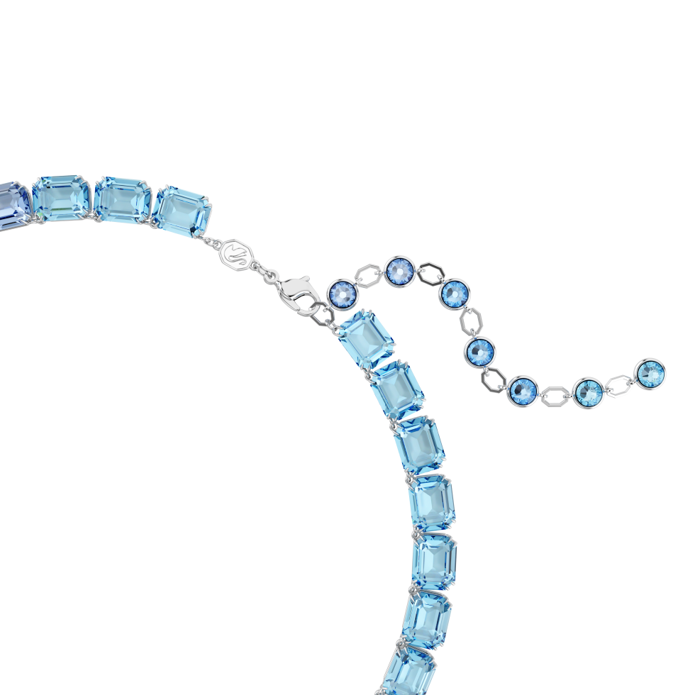 With multiple mesmerizing blue tones, this Millenia necklace contains at least 30% Swarovski ReCreatedâ„¢ crystals, our most sustainable crystals to date. The luminous design is rhodium plated and features a vivid gradient of octagon-cut crystals and a lobster closure. A piece that would pair beautifully with a matching Tennis bracelet or ring.