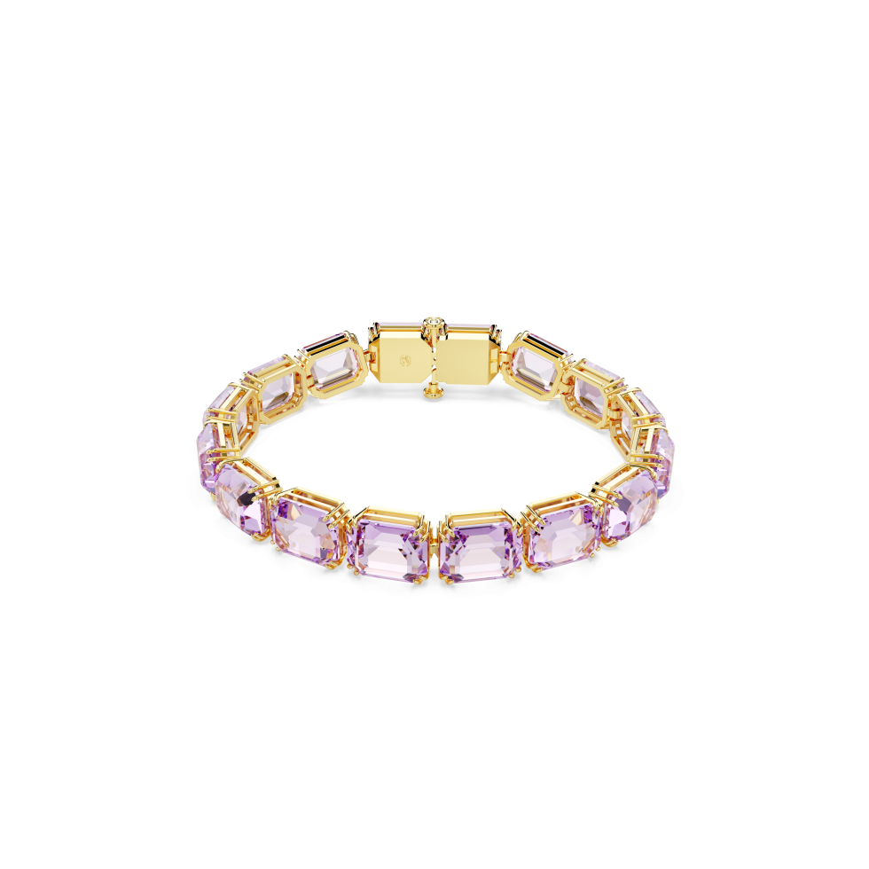 Radiating light and vivid color, this brilliant Millenia bracelet demands attention. The all-round design is gold-tone plated and brought to life by a majestic decoration of octagon-cut crystals in a purple shade. A pure expression of joy that can be easily paired with a matching choker or necklace.