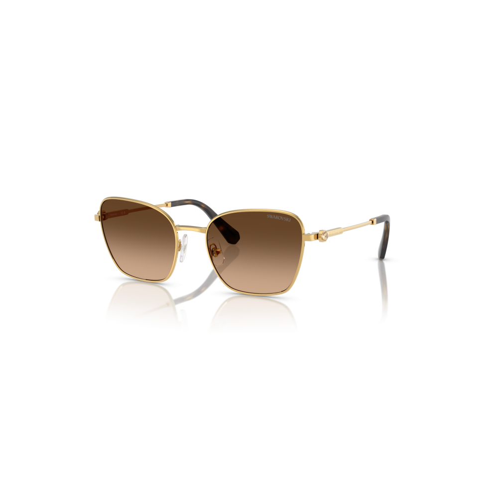 These Swarovski sunglasses combine classic elegance with elevated glamour. Inspired by our iconic Millenia family, the square frames are crafted from gold-tone metal with gradient brown lenses. To enhance the design’s golden glow, a mini octagon-cut crystal is delicately set on each temple. Style with casually chic ensembles for an effortless high-low look.