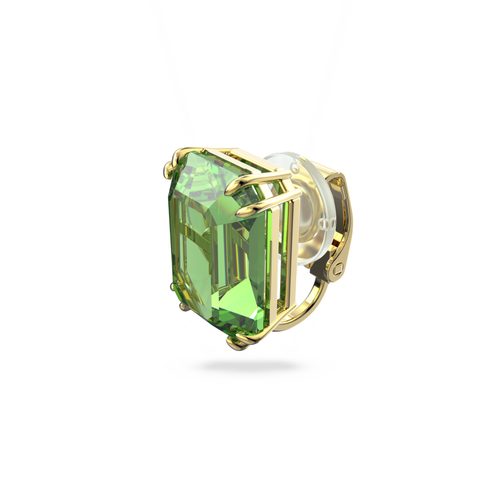 Millenia clip earring, Single, Octagon cut, Green, Gold-tone plated