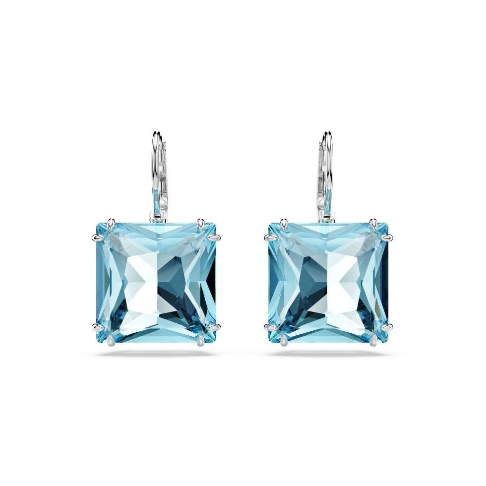 Millenia drop earrings, Square cut, Blue, Rhodium plated