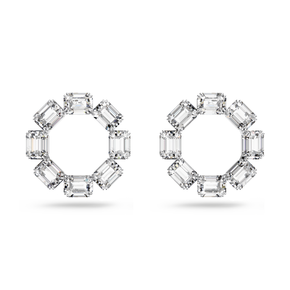 Millenia hoop earrings, Octagon cut, White, Rhodium plated