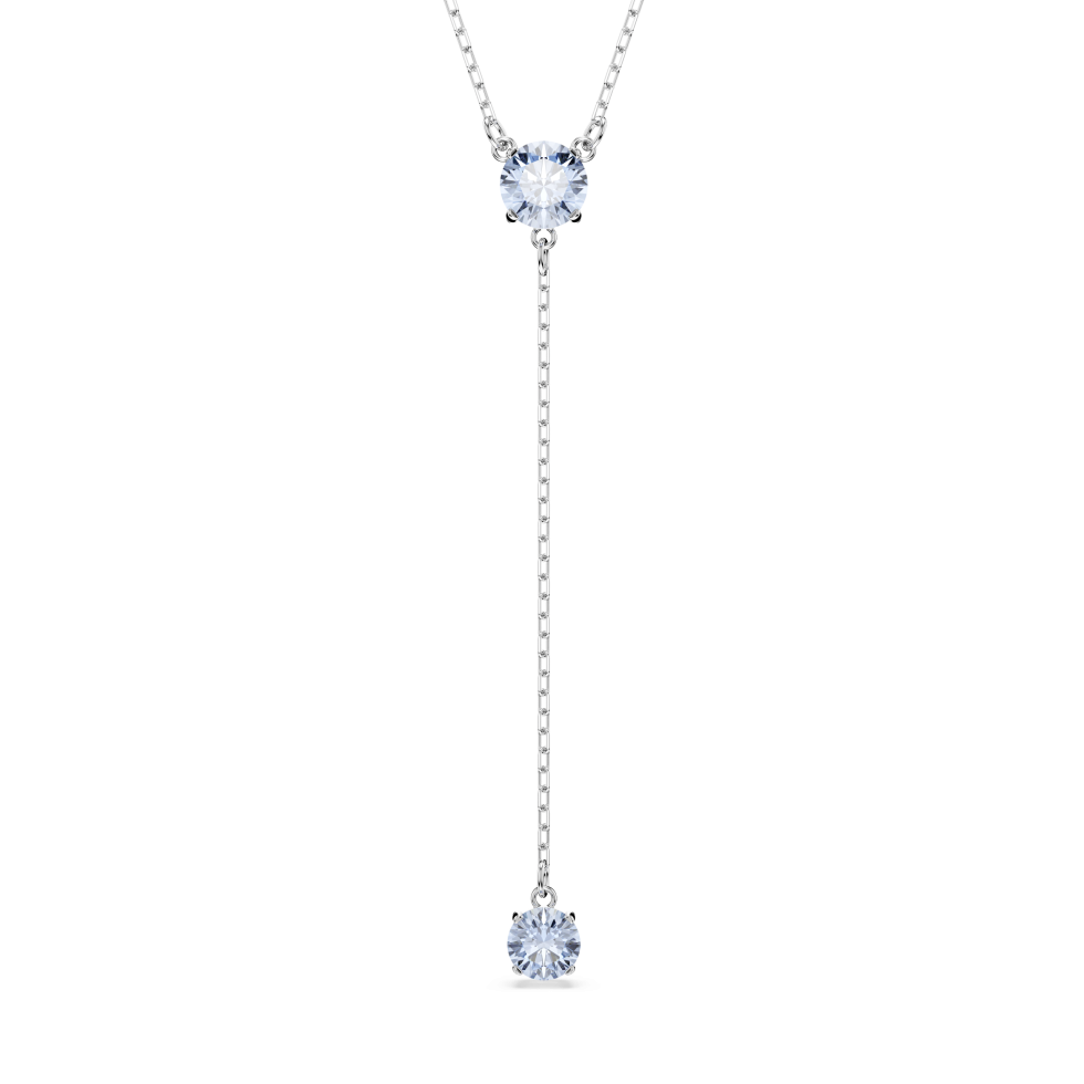 Shaped with elegance and infused with color, this necklace is a pure expression of Swarovski’s joyful style. The rhodium plated design features a central round-cut crystal in blue, with another that is suspended below from a delicate chain. Wear this light-catching piece to illuminate your look for any special occasion.