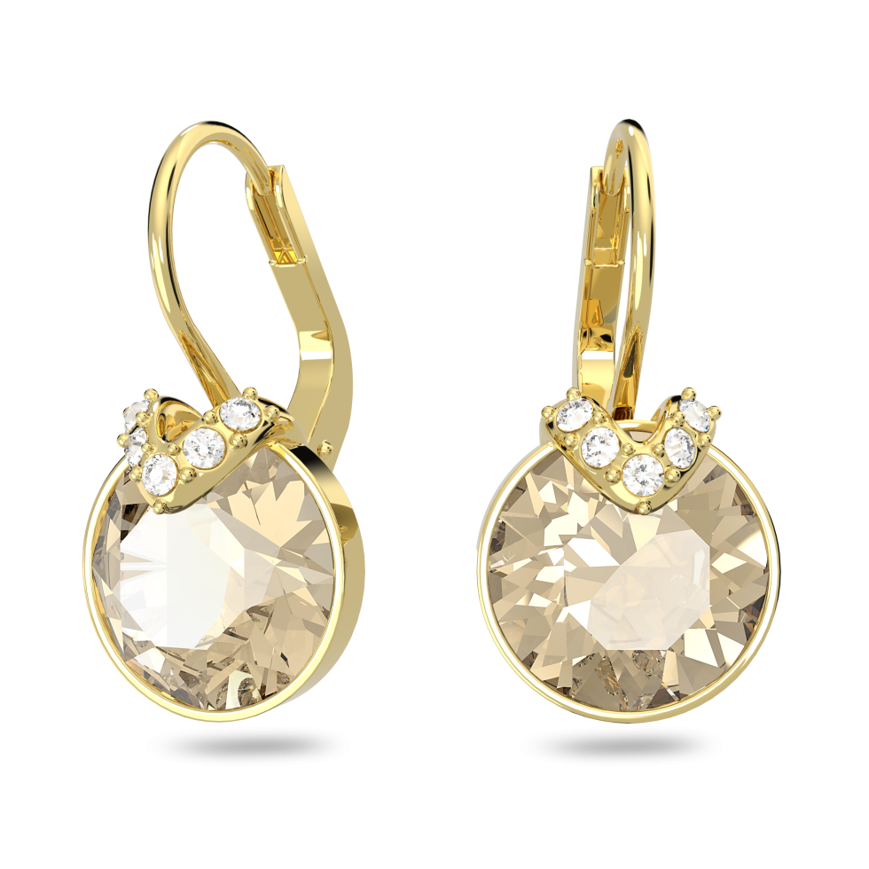 Bella V drop earrings, Round cut, Gold tone, Gold-tone plated