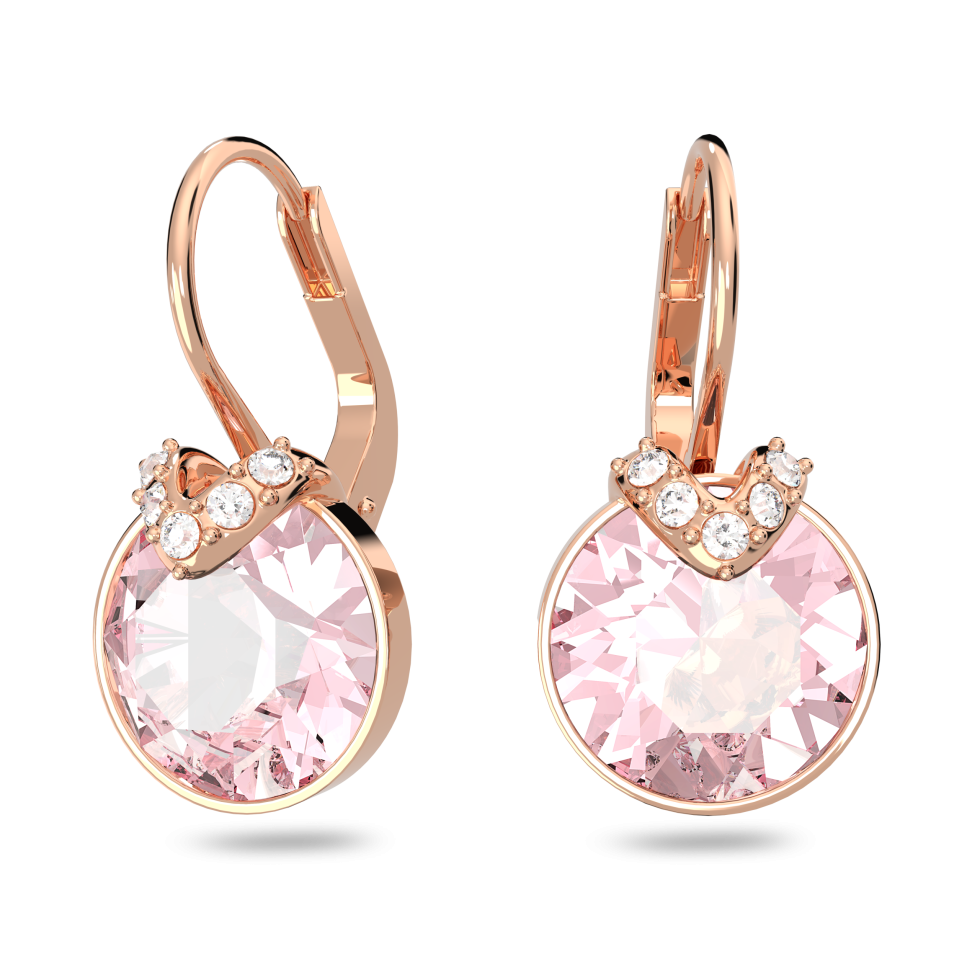 Bella V drop earrings, Round cut, Pink, Rose gold-tone plated