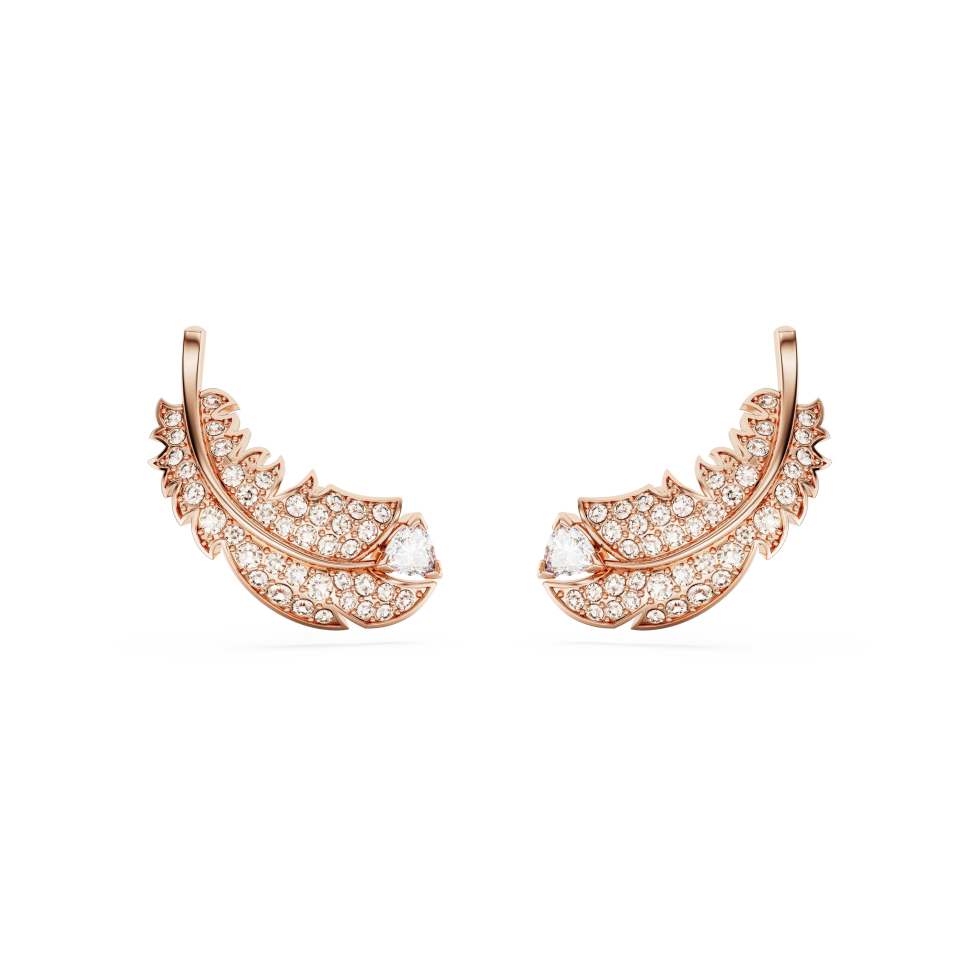 Idyllia stud earrings, Feather, White, Rose gold-tone plated