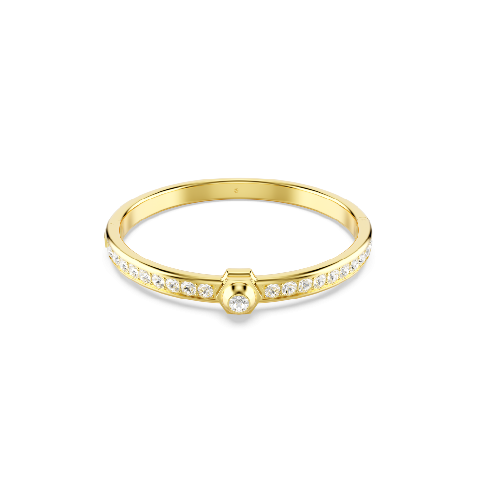 This Numina bangle delivers dazzling style with an industrial edge. The beautifully engineered piece is crafted with gold-tone plating and features an adornment of clear round crystals and a captivating central stud. Wear it to give your look a bold and contemporary twist.