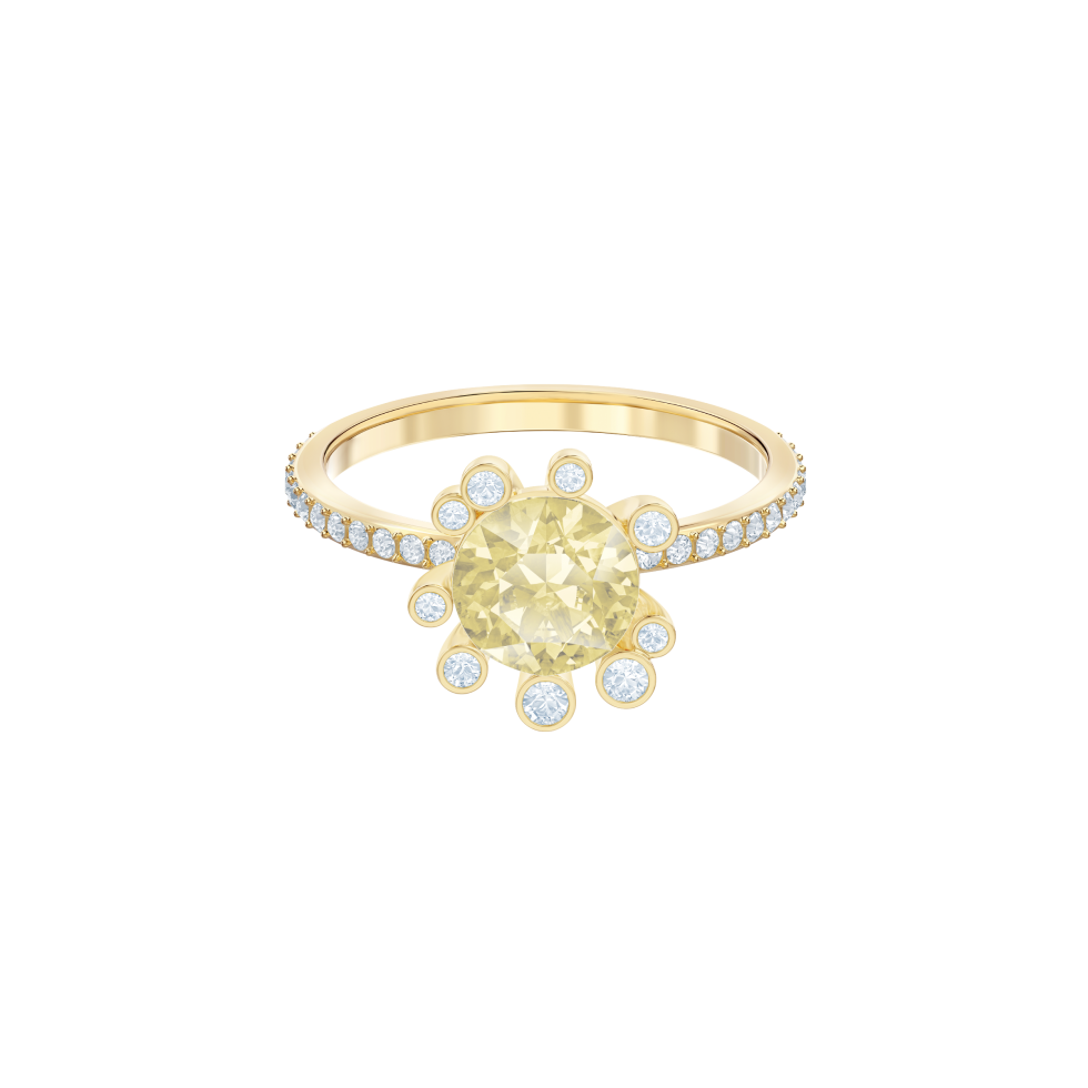 Hit refresh on your spring wardrobe with this glam gold-plated ring. Inspired by the color of desert sand in the sunshine, the golden crystal is showcased to perfection using the prong setting and a halo of pavé. A modern and unexpected new take on classic crystal jewelry.
