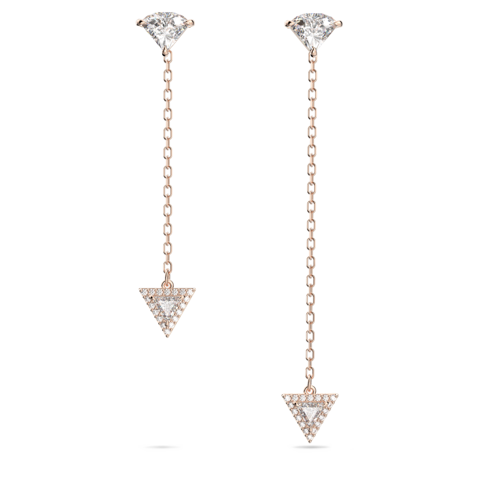 Stilla drop earrings, Asymmetrical design, Triangle cut, White, Rose gold-tone plated