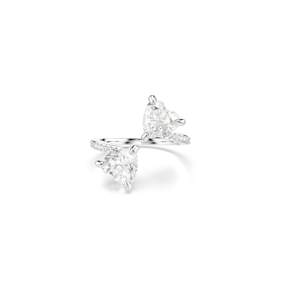 This silver-tone finish Swarovski ring is inspired by the idea of two hearts meeting. It captures the spirit of romance with two heart-shaped, finely cut stones meeting in the middle. The glittering white of the hearts is all the more accentuated by a simple, yet elegant design. Its timeless symbolism makes this Swarovski ring the perfect gift for a special loved one.
