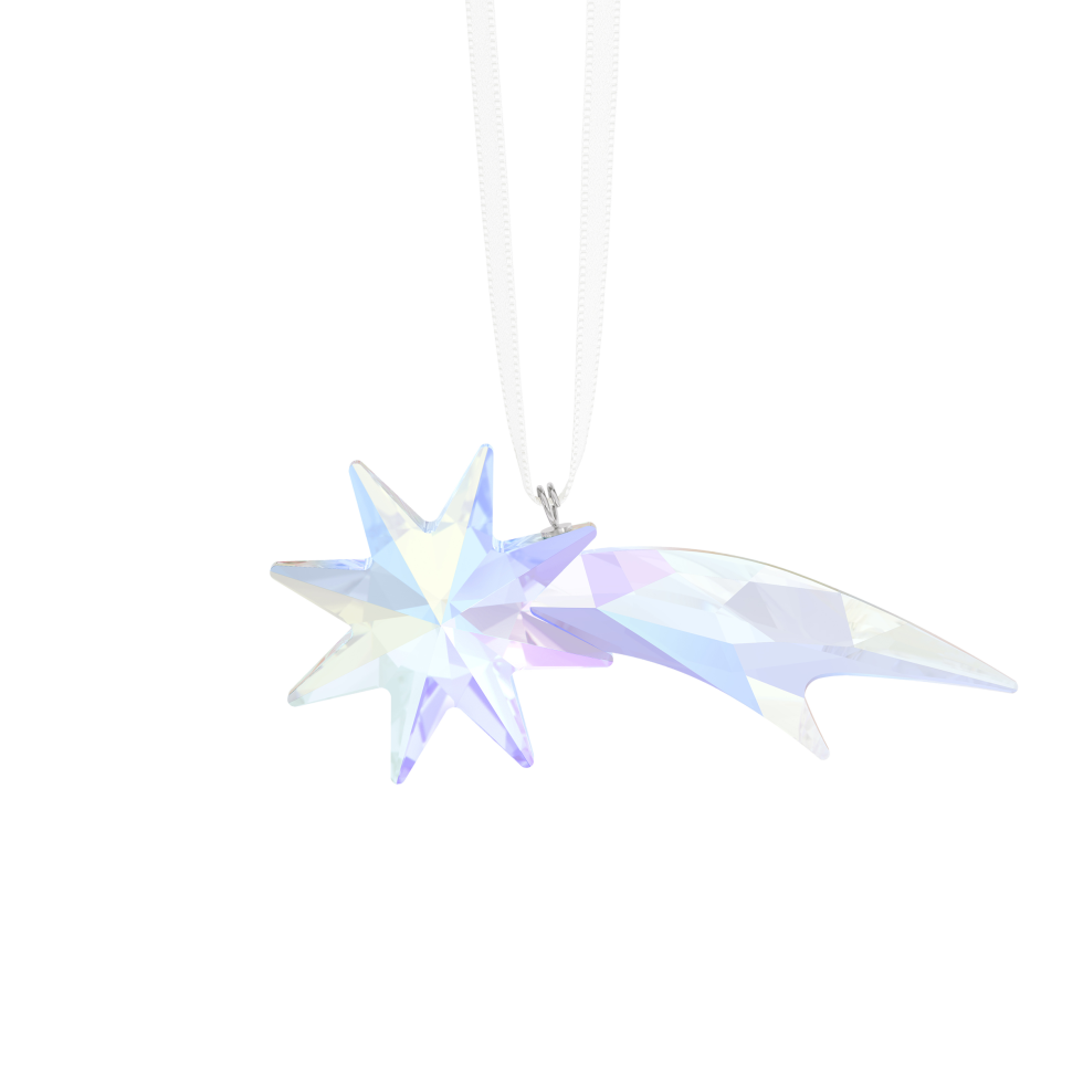 Add a glamorous touch to your festive decorations with this stunning ornament. Depicting a shooting star, it is expertly crafted with great attention to detail and hangs on a white satin ribbon. The crystal has been coated with our Aurora Boreale coating, which reflects the light in every color of the rainbow to mimic the Northern Lights. Use it to decorate your Christmas tree, hang it in a window or present it on the Christmas Ornament Home Display (available for purchase separately). An ideal gift. Decoration object. Not a toy. Not suitable for children under 15.