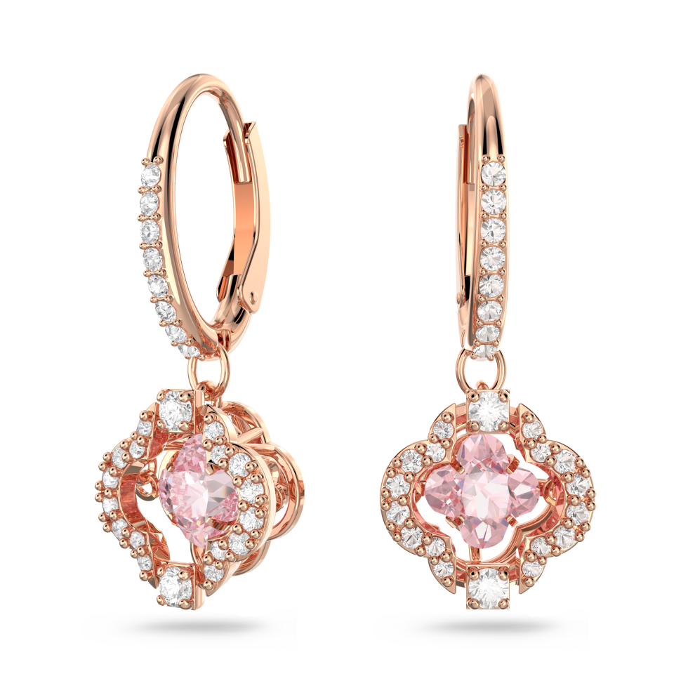 Una drop earrings, Clover, Pink, Rose gold-tone plated