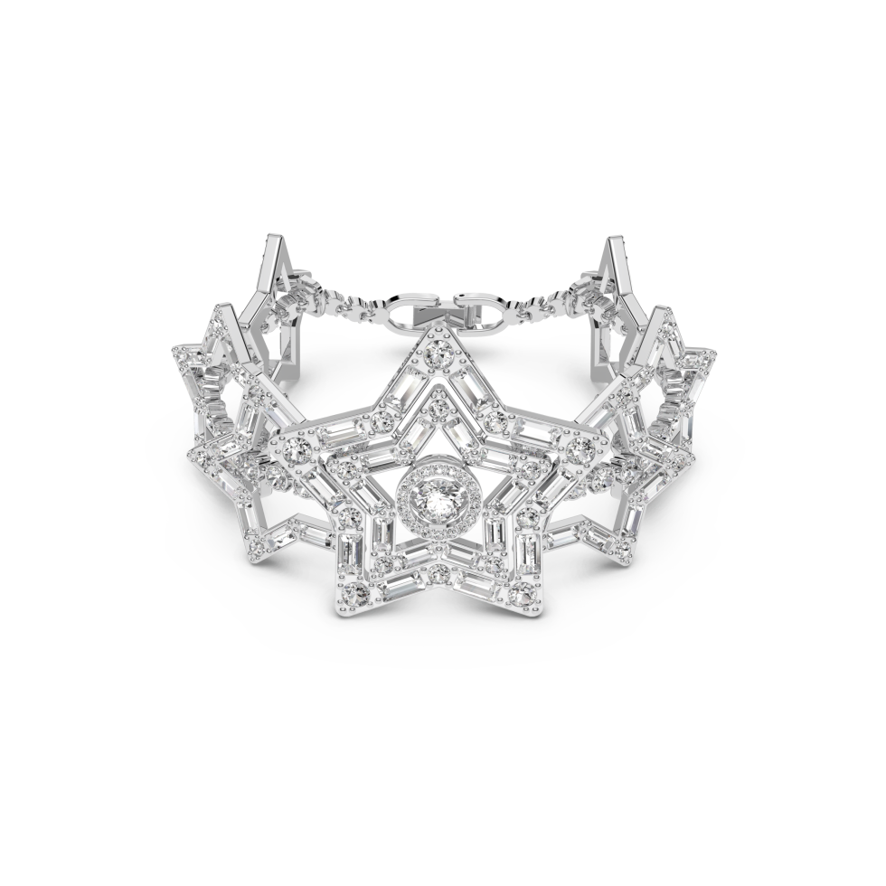 Stella bracelet, Mixed cuts, Star, Large, White, Rhodium plated