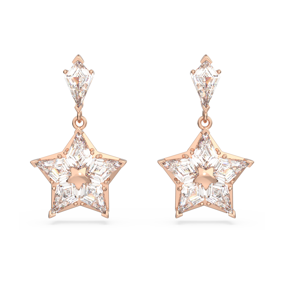Stella drop earrings, Kite cut, Star, White, Rose gold-tone plated