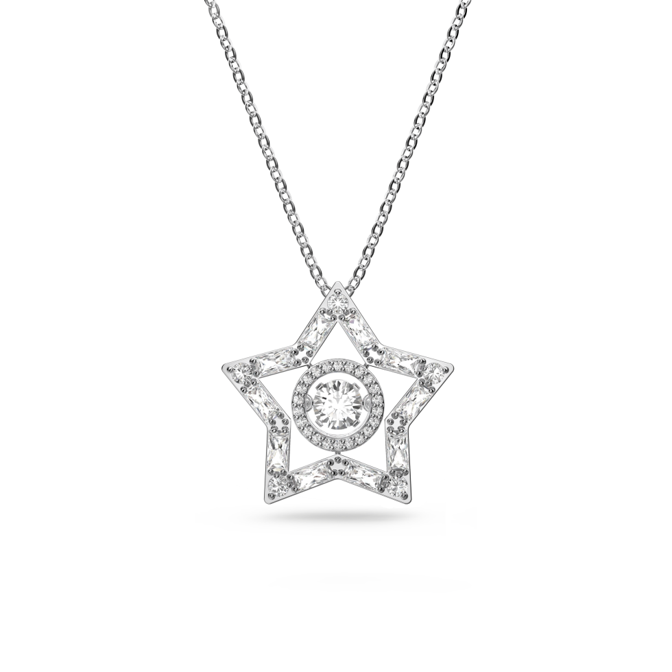 Stella pendant, Mixed cuts, Star, Long, White, Rhodium plated