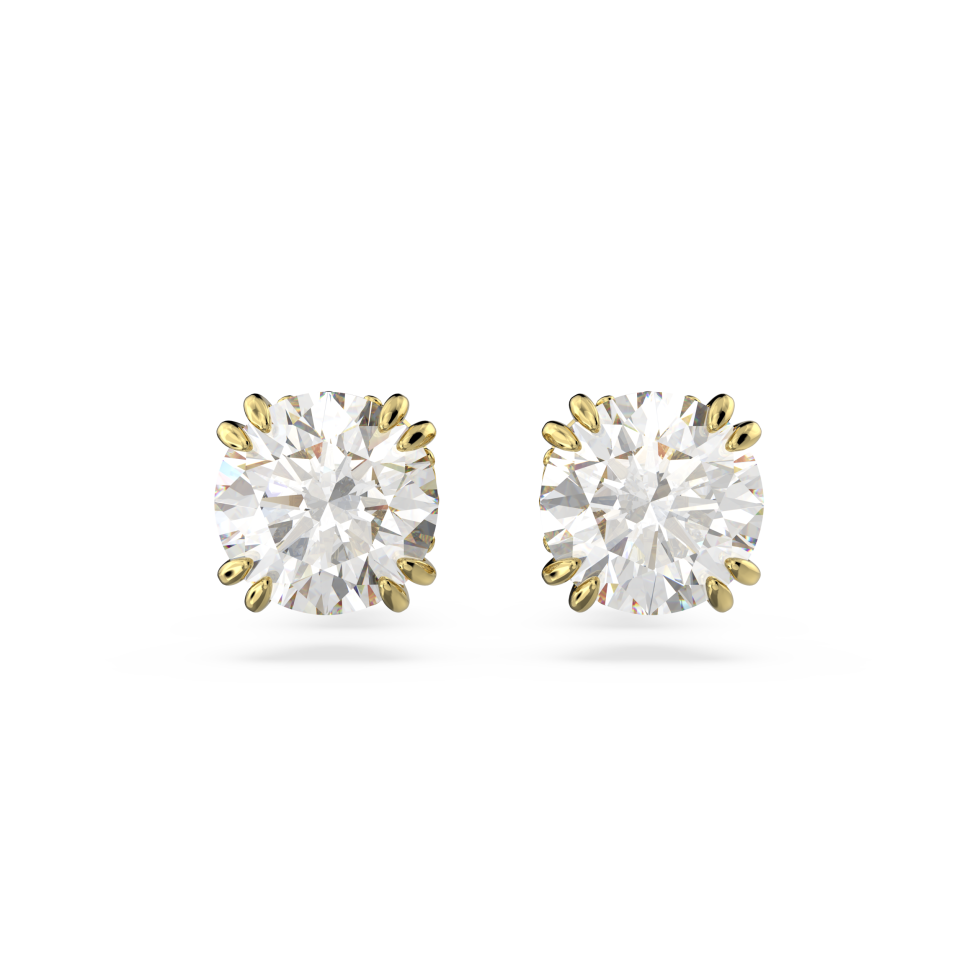 Stilla stud earrings, Round cut, White, Gold-tone plated