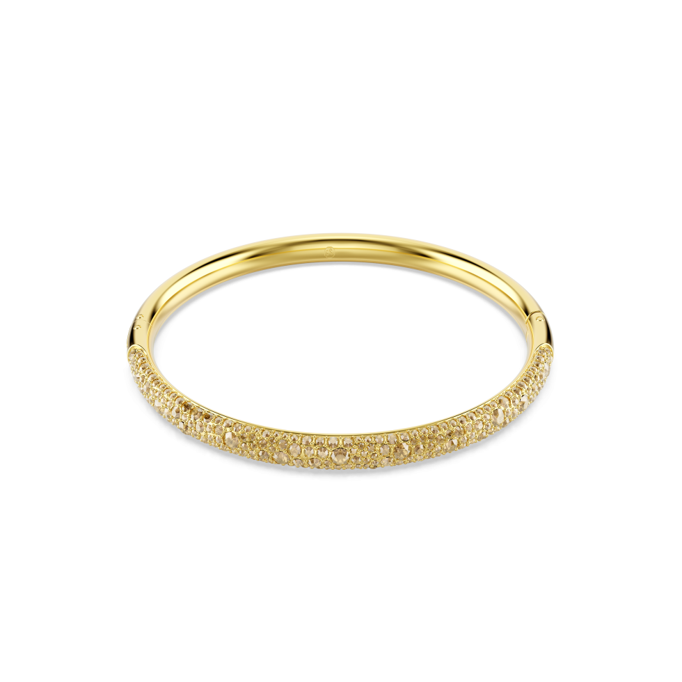 This dazzling Sublima bangle will infuse your style with stardust. The gold-tone plated band wraps gracefully around the wrist and features a pavé of gold-tone round crystals in different sizes across the top section. A luxurious touch of refinement for your everyday looks.