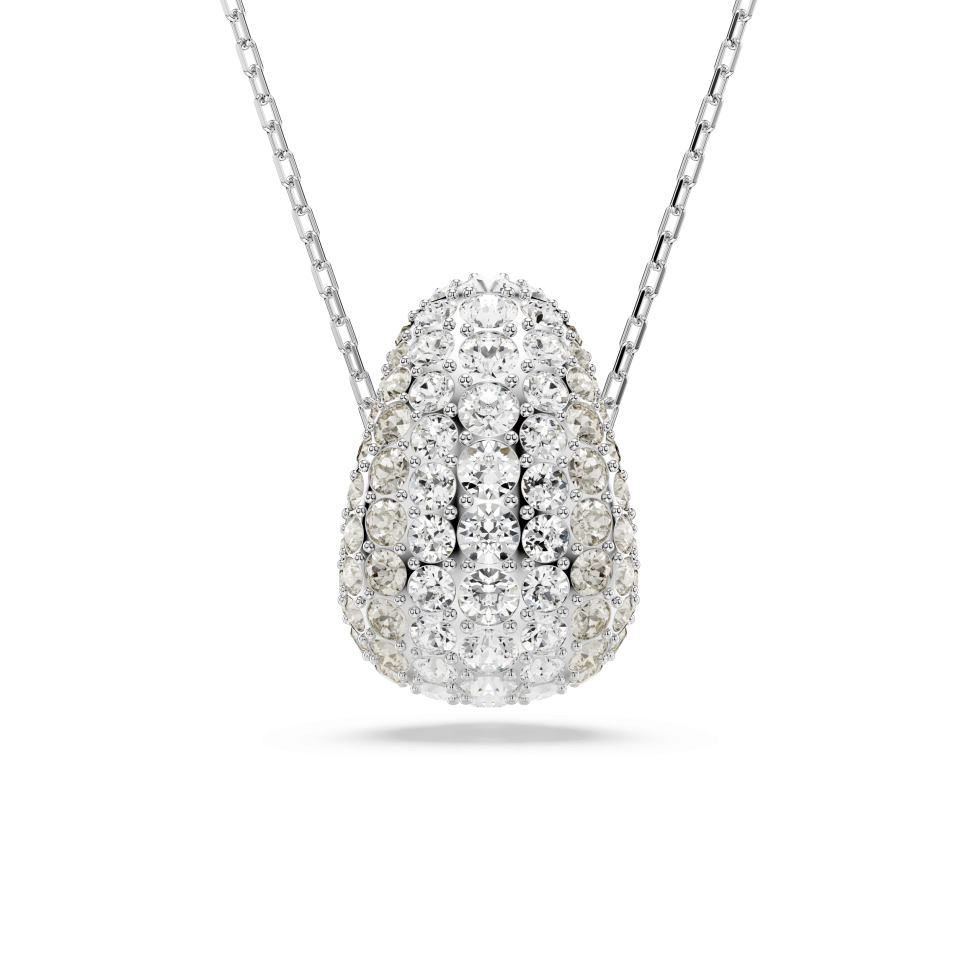 An exquisite example of Swarovski savoir-faire, this Sublima pendant is a powerful centerpiece for any outfit. Suspended from an elegant chain, the rhodium plated motif features a domed metal base for added volume, covered with a pavé of clear crystals. The Meteora pattern, made up of different-sized crystals, dazzles with mesmerizing effect. Wear with similar Sublima pieces to make waves.