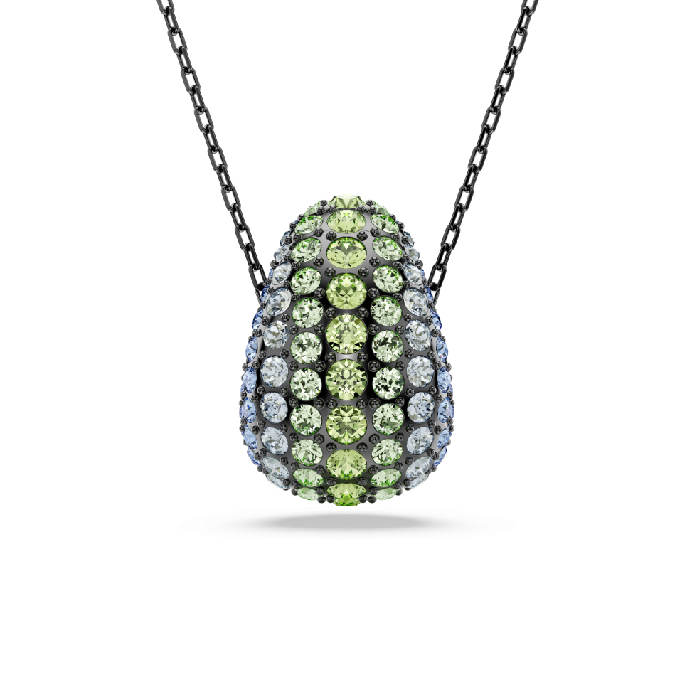 Dive into the marine-inspired shades of this stunning Sublima pendant. Suspended from a delicate chain, the ruthenium plated motif is domed for added volume and embellished with a pavé of crystals in vivid blue and green shades. The Meteora pattern, made up of different-sized crystals, dazzles with mesmerizing effect. Wear with a matching pair of Sublima earrings to make waves with your style.