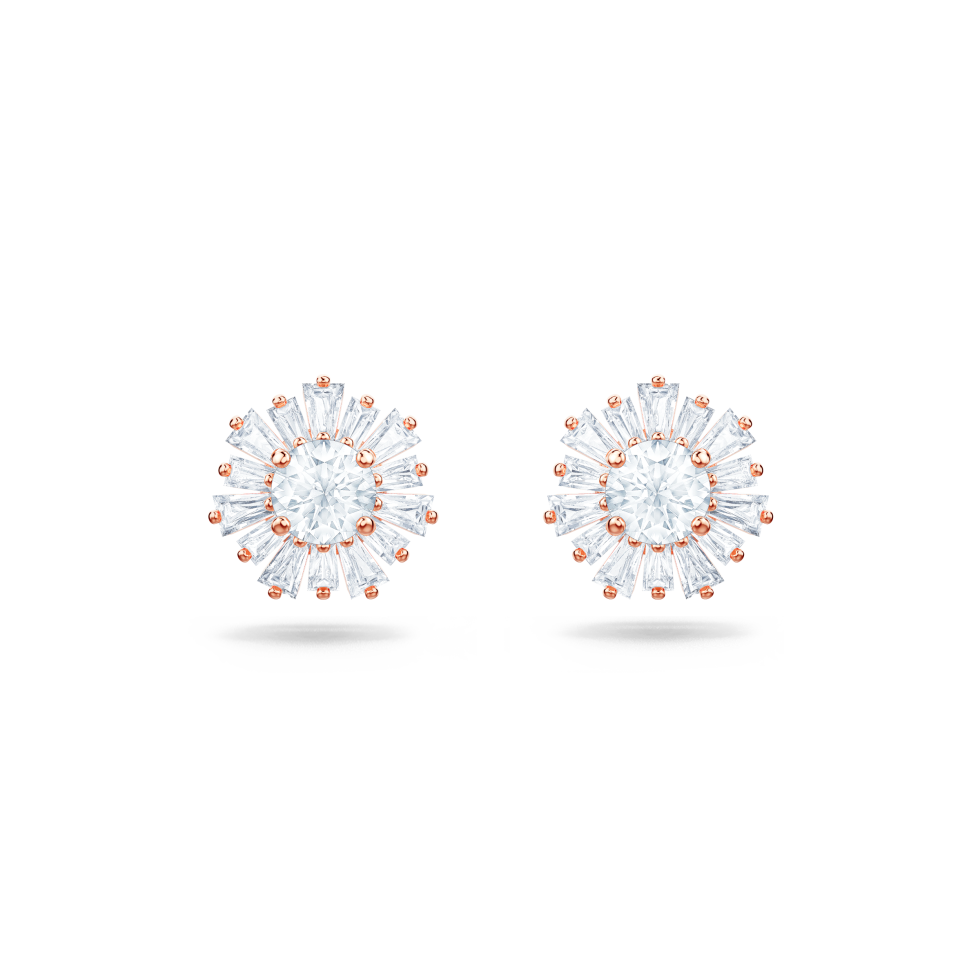 Idyllia stud earrings, Mixed cuts, Sun, White, Rose gold-tone plated