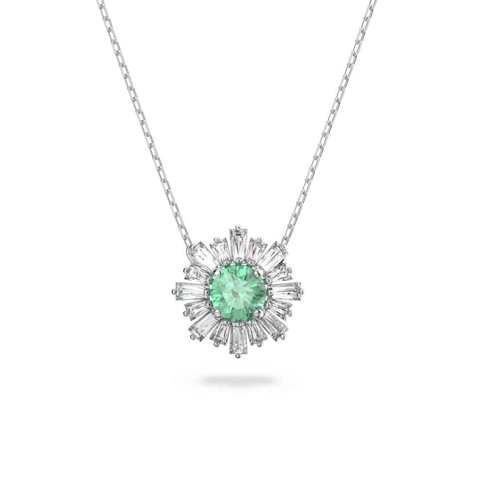 Idyllia pendant, Mixed cuts, Sun, Green, Rhodium plated