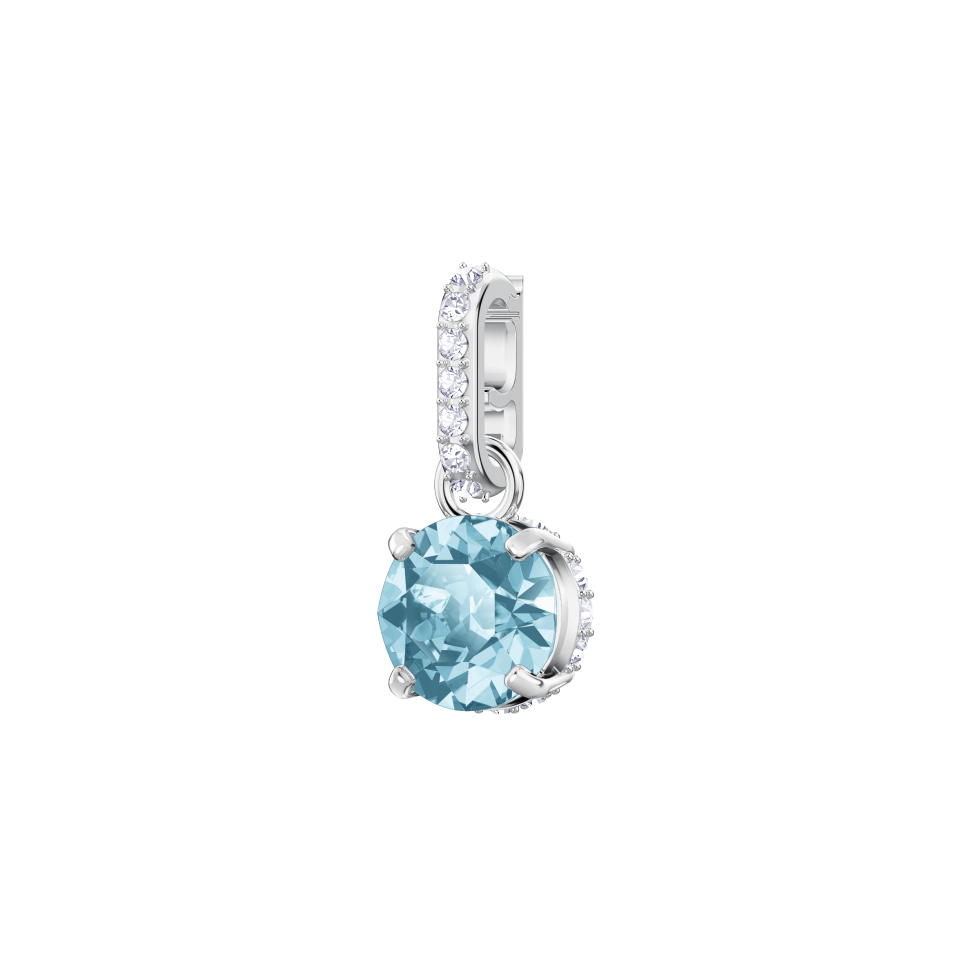 Give a personalized gift to treasure forever with this gorgeous rhodium-plated charm. It features an blue-colored crystal to represent Blue Zircon, the December birthstone. The easy-to-use, clip-on clasp has been developed especially to fit securely onto any Remix Strand or the new Remix Carrier Bracelet. You could also attach it to any other Swarovski jewelry piece for a customized look with a special meaning.