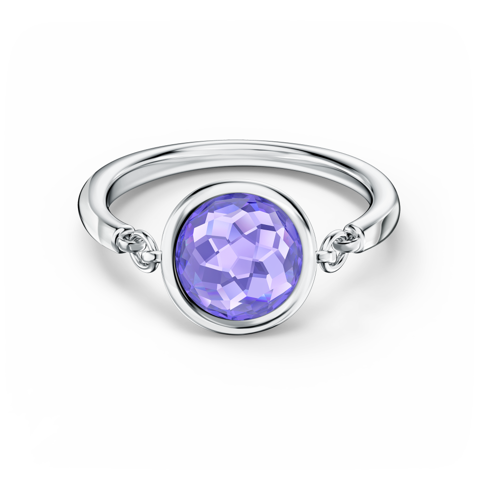 This Swarovski ring highlights the purity of crystals through expert craftsmanship. A round crystal, beautifully sparkling in a purple hue, takes center stage, held by two shimmering chain links which emphasize its timeless appeal. Simple yet elegant, it is perfect for stacking with other rings for a stylish effect. Intended as a lasting addition to your jewelry collection, this ring is a great accent to everyday looks and a thoughtful gift for someone special.