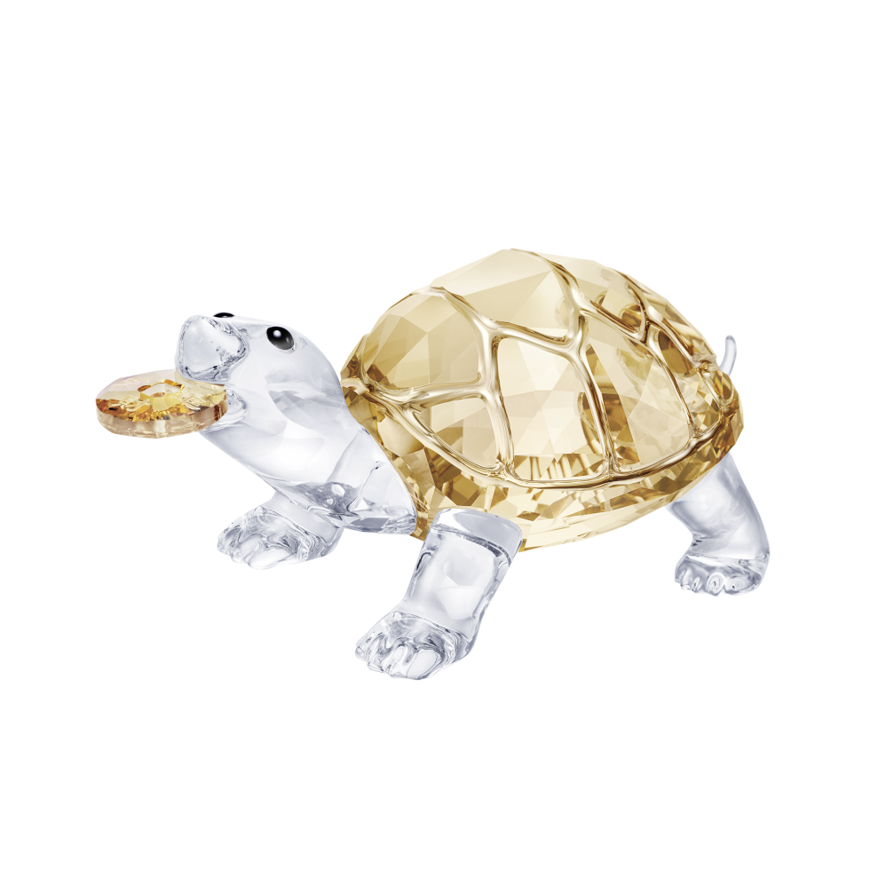 Full of symbolism, this exquisitely crafted Tortoise would make a meaningful gift or an extra-special home decoration piece. Featuring auspicious golden-colored crystal, it symbolizes health and longevity, and carries a coin in its mouth to represent a bright and wealthy future. Created in collaboration with artists from the Central Academy of Fine Arts in Beijing, the design showcases 698 crystal facets. Decoration object. Not a toy. Not suitable for children under 15.