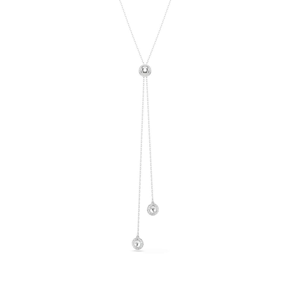 Embrace the versatility of this elegant Y-shape pendant. The rhodium plated chain features a sliding mechanism for an easily adjustable fit and is adorned with three double-sided motifs. Simply reverse the jewelry to showcase a different display of round-cut crystals. Mix and match with other Una Angelic pieces for a look of ultimate radiance.